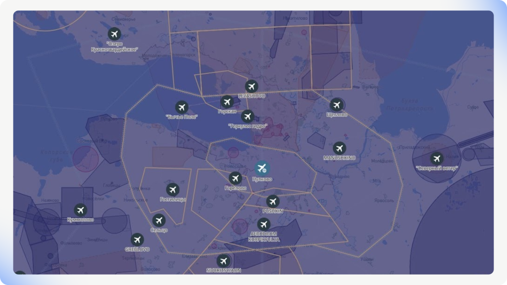 На расстоянии до 30 км от взлётно-посадочных полос полёты запрещены без уведомления органов УВД, даже если высота не превышает 150 метров. Исключений нет — необходимо предварительное согласование.