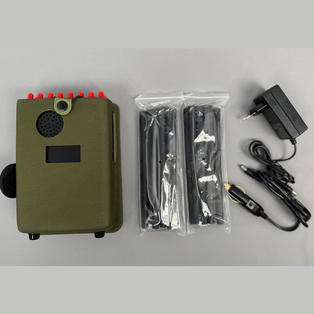 - Подавление радиостанций: Блокирует VHF и UHF частоты.