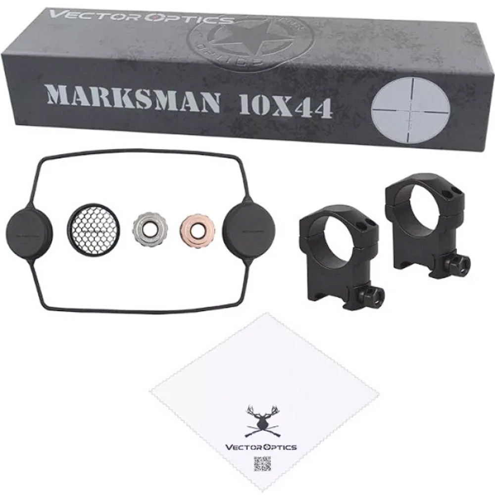 Дневной прицел VectorOptics Marksman 10×44 SFP предназначен для высокоточной целевой и практической стрельбы на средних дистанциях из огнестрельного оружия под патрон .308 Win или PCP / CO2 пневматики.